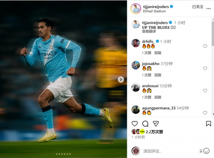 Hỗ trợ gấp đôi! Reinders ăn mừng chiến thắng trên mạng xã hội: Come on Blue Moon