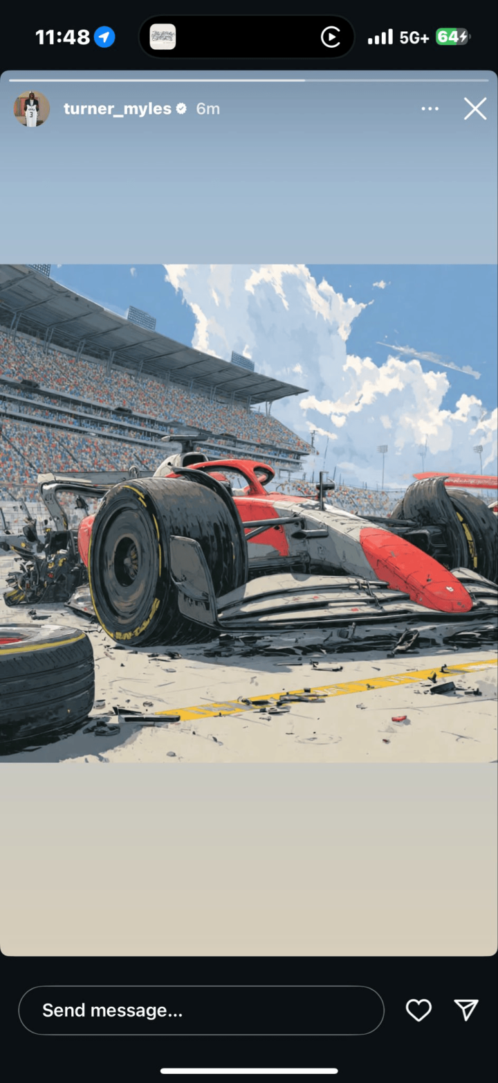Sau trận đấu, người chơi Myles Turner của Bucks đã đăng một bức ảnh về một chiếc ô tô bị hư hỏng nhưng nhanh chóng xóa nó.