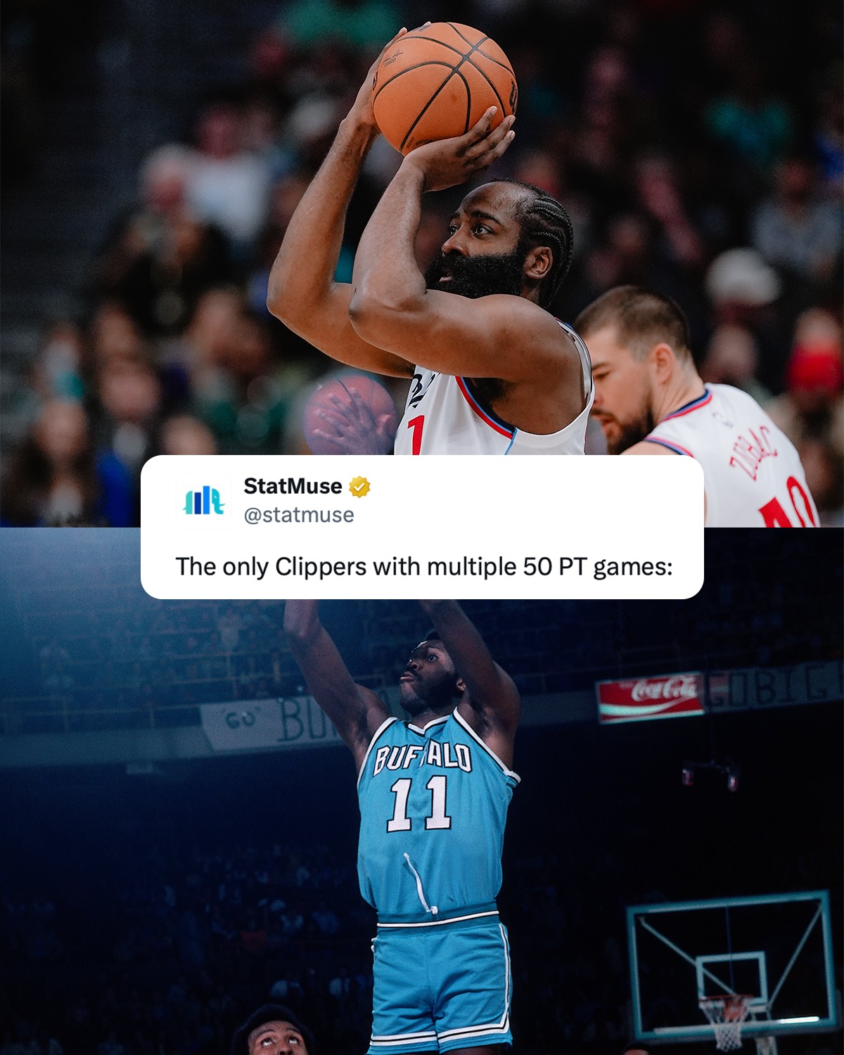 Báo cáo của Clippers. Hai cầu thủ duy nhất trong danh sách đã nhiều lần ghi được hơn 50 điểm trong một trận đấu trong lịch sử của Clippers: James Harden và Bob McAdoo.